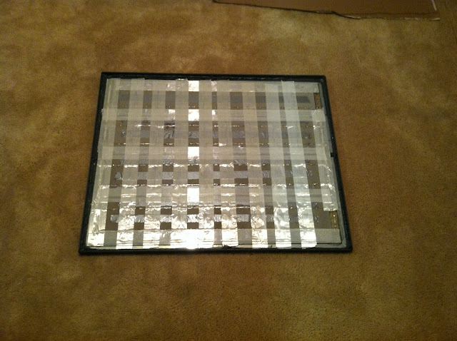 Here is the frame with glass and paint sitting in my dining room, ready to have the cells installed and encapsulated